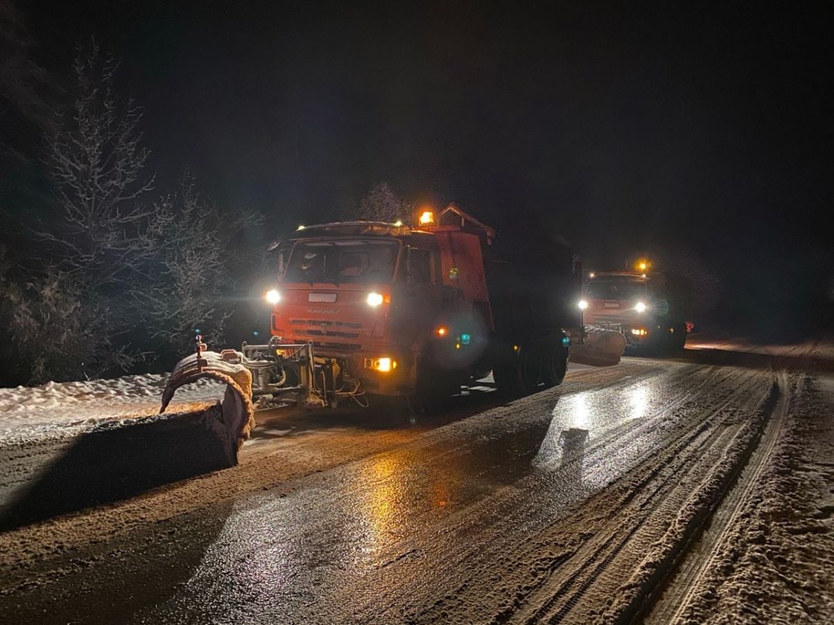 Также проезжую часть обрабатывают противогололедными материалами. За минувшие сутки израсходовано больше 2100 кубометров песчано-соляной смеси.