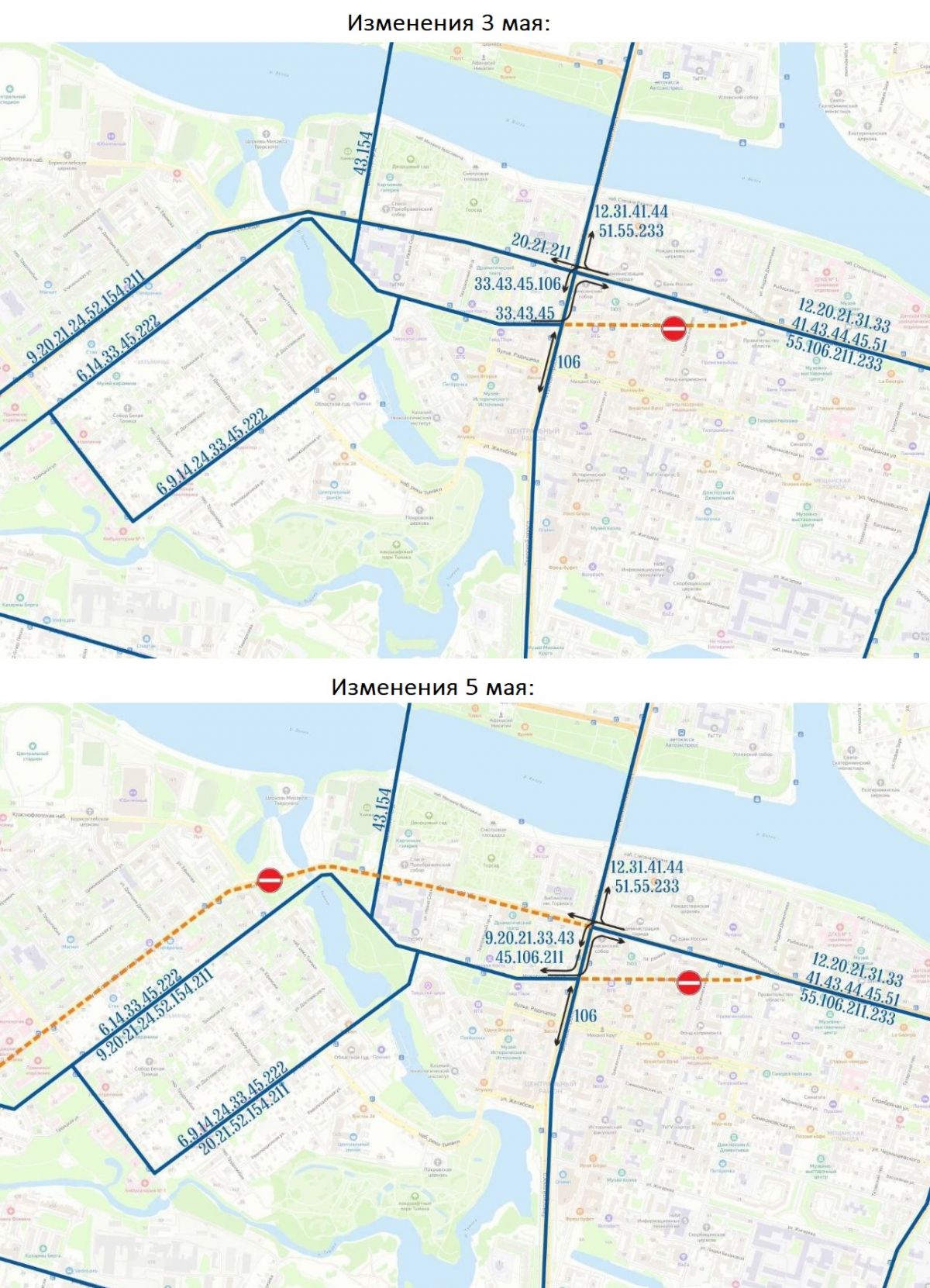 Схема движения нескольких автобусных маршрутов в этот период будет изменена: