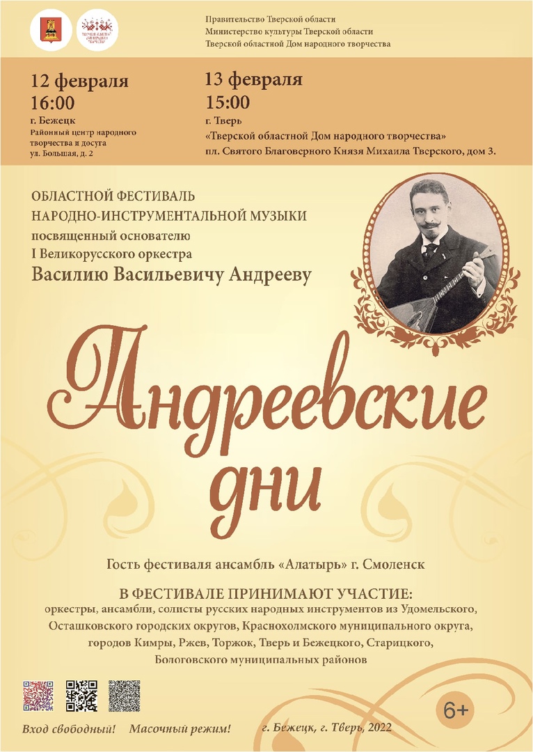 12 февраля в Бежецке участников фестиваля – а это около 150 музыкантов – ждёт насыщенная программа. А в 16:00 в концертном зале районного Дома народного творчества Бежецка (улица Большая, дом 2) состоится торжественное открытие фестиваля и концерт любительских коллективов народно-инструментальной музыки.
