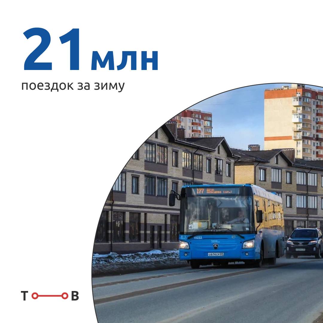 В Твери и Калининском округе пассажиры воспользовались автобусами почти 18 млн раз. В Ржеве совершено 1,5 млн поездок, в Кимрах – почти 1,1 млн. Количество поездок в Конаково составило почти 552 тысячи, в Старице – более 62 тысяч, а в Зубцове – более 40 тысяч.