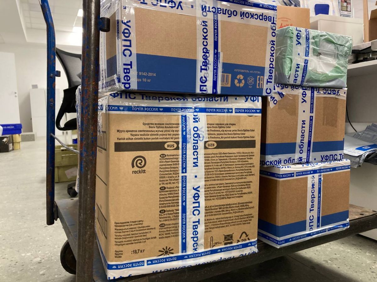 Посылки со всей страны попадают в логистический центр Почты в Москве. Там их передают представителям Минобороны РФ, которые самостоятельно доставляют их адресатам.