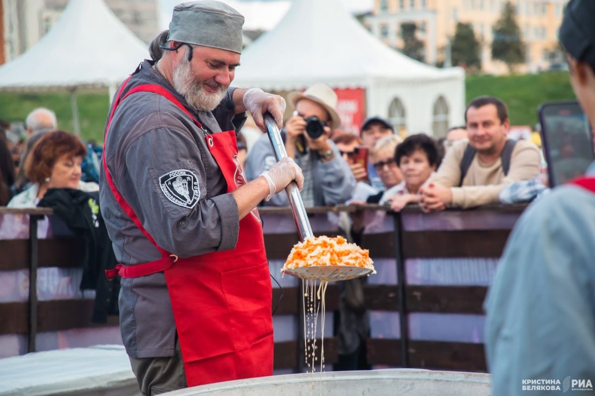 Для гостей и жителей Твери приготовили фирменное блюдо «Ушное по-верхневолжски» от специального гостя - шеф-повара Олега Ольхова. Приготовить 170 литров овощного рагу ему помогали студенты Тверского колледжа сервиса и туризма, а также тверской шеф-повар Светлана Смирнова.