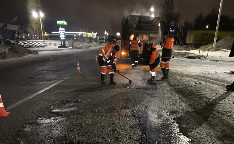 После установления сухой и тёплой погоды начнётся ремонт дорожного полотна «большими картами» с использованием горячего асфальтобетона.