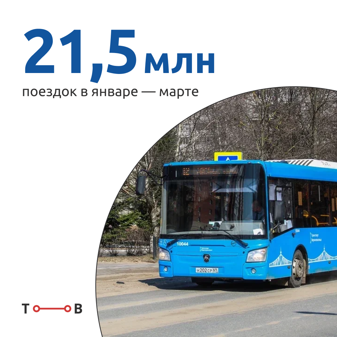В Твери и Калининском округе пассажиры воспользовались автобусами 18,3 млн раз. В Ржеве совершено 1,5 млн поездок, в Кимрах – 1,1 млн. Количество поездок в Конаково составило более 547 тысяч, в Старице – более 54 тысяч, а в Зубцове – более 39 тысяч.