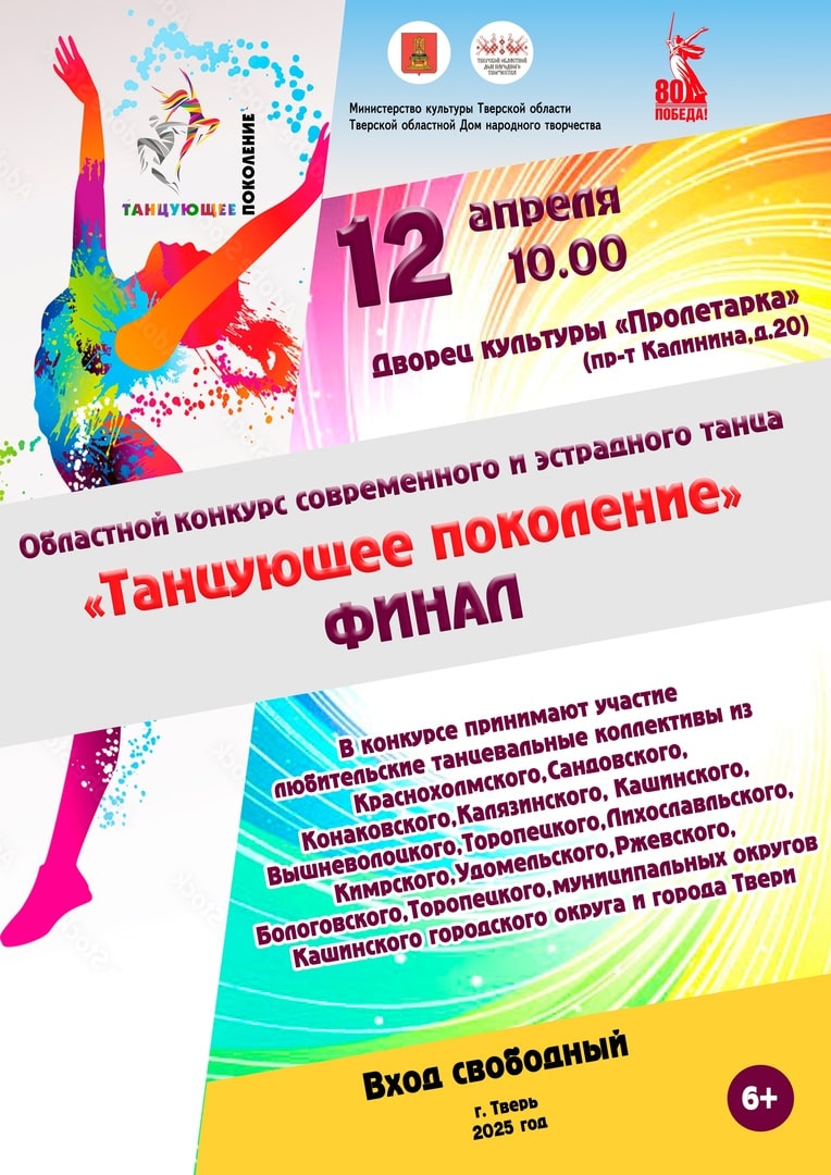 На сцену выйдут талантливые любительские танцевальные коллективы из Твери, Бологого, Вышнего Волочка, Калязина, Кашина, Конакова, Кимр, Красного Холма, Лихославля, Ржева, Сандова, Торопца и Удомли.