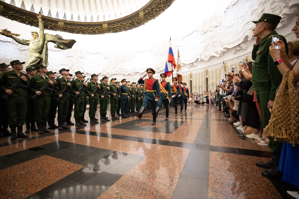 Церемония прошла в Зале Славы музея. Здесь на мраморных пилонах высечены имена почти 12 тысяч Героев Советского Союза и России, получивших звания за подвиги в годы Великой Отечественной войны.