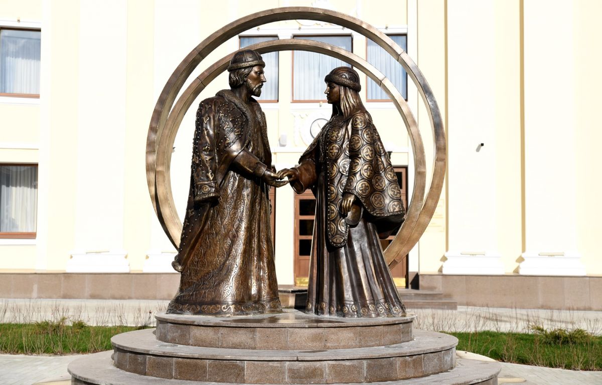 Скульптором проекта стал Василий Фильшин. Расположен памятник на гранитном постаменте. А при разработке эскиза учитывали мнение экспертов историков. В частности, лица святых выполнены в соответствии с иконописными ликами и историческими данными.
