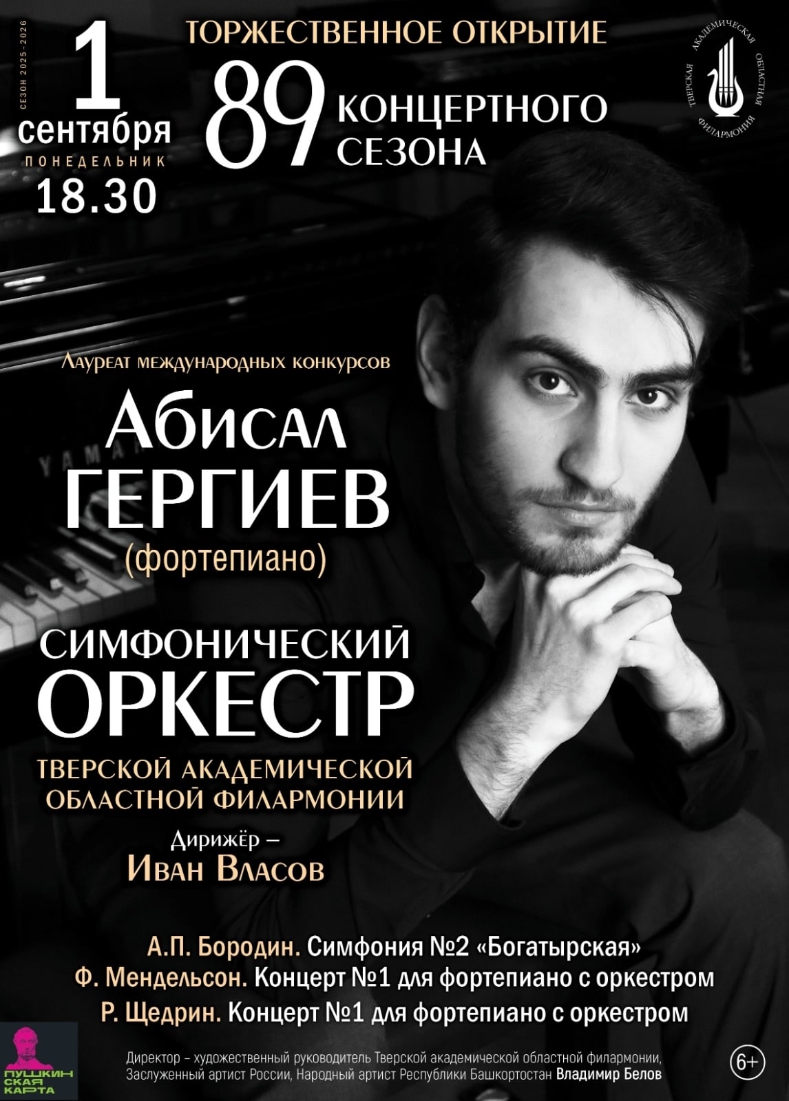 В первую программу нового сезона вошли: Концерт №1 для фортепиано с оркестром Ф. Мендельсона, Концерт №1 для фортепиано с оркестром Р. Щедрина, а также Симфония №2 «Богатырская» А.П. Бородина.