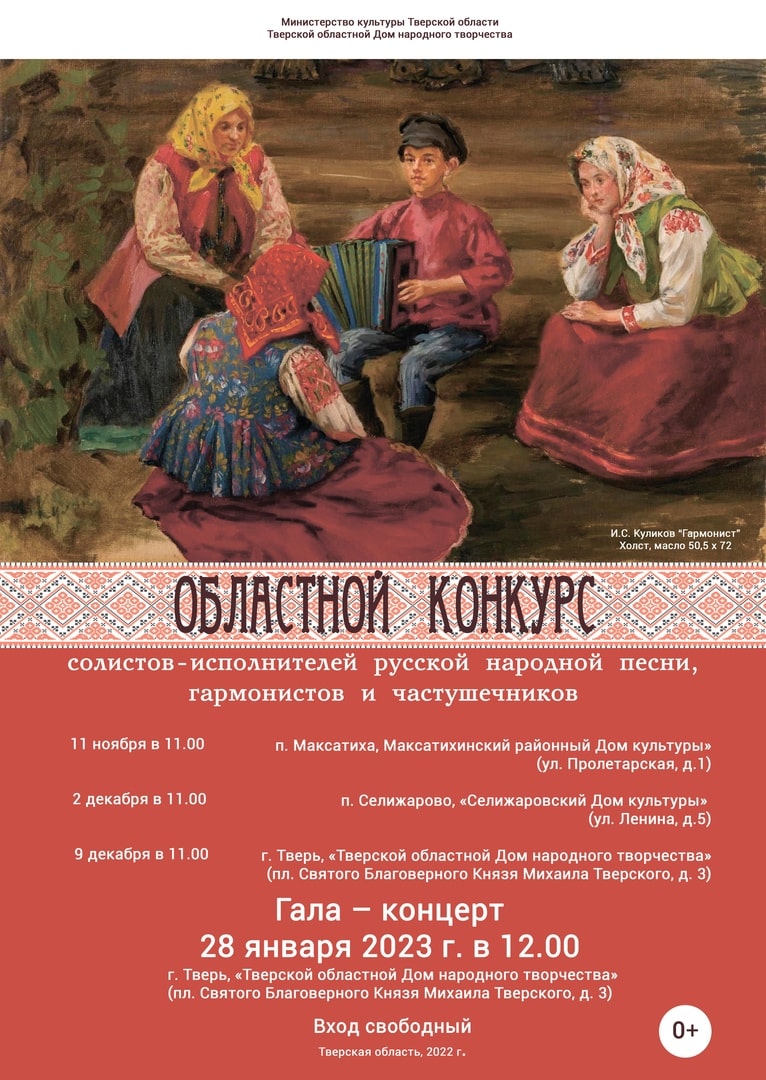 А 28 января в 12:00 состоится финал областного конкурса. Он также пройдёт в Тверском областном Доме народного творчества по адресу: Тверь, площадь Святого Благоверного Князя Михаила Тверского, дом 3. Вход свободный.