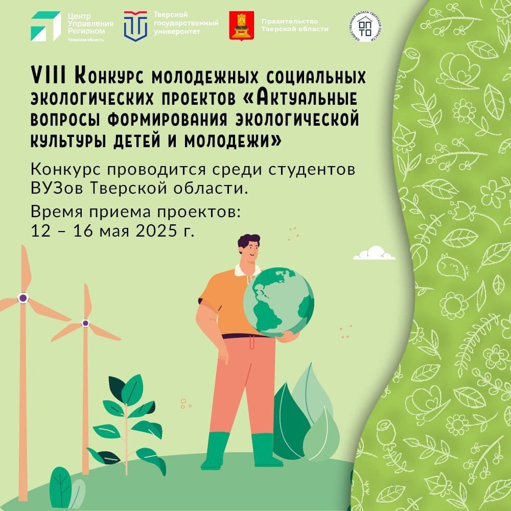 Студенты вузов Тверской области могут выдвинуть на конкурс эко инициативы, направленные на сбережение природных ресурсов региона. Принимаются эколого-просветительские проекты по темам: