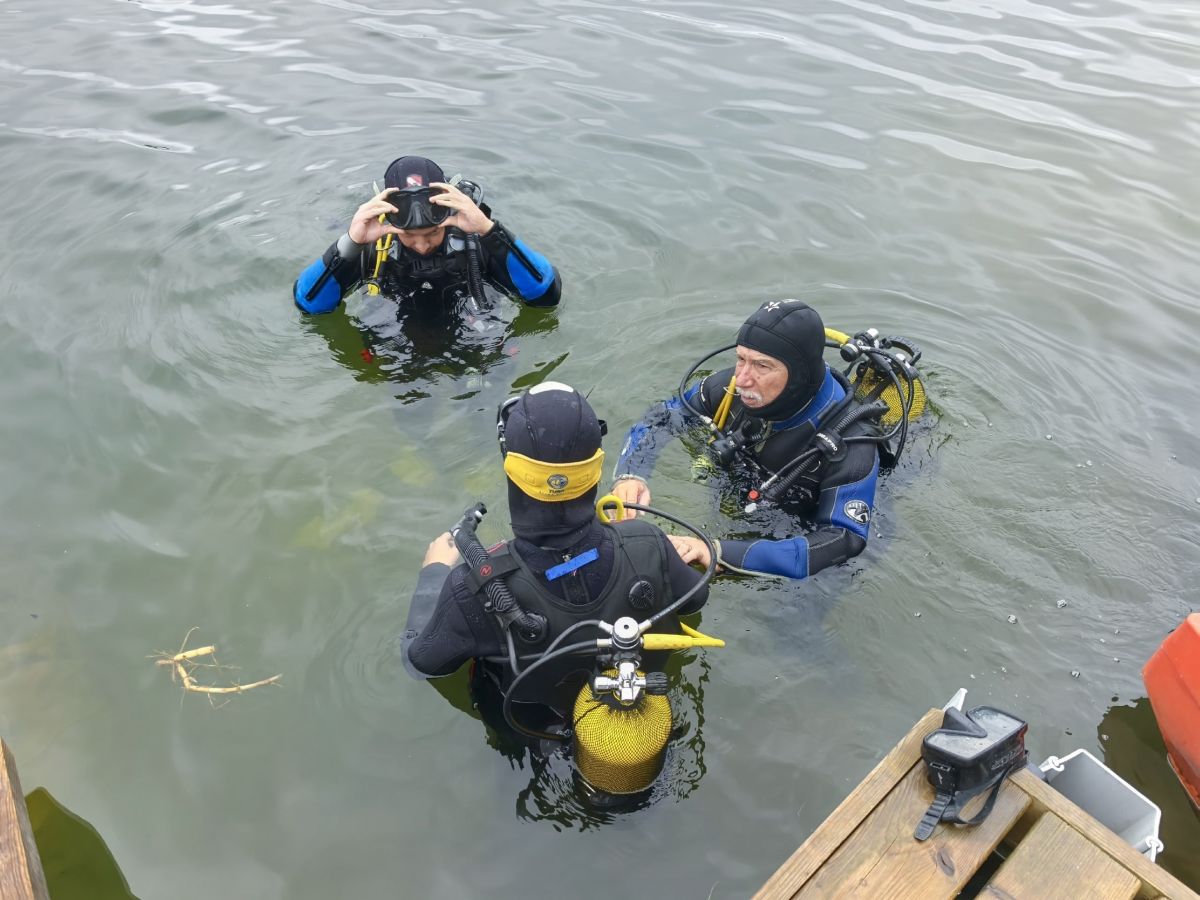 Сначала для ветеранов прошёл инструктаж. Затем после проверки оборудования, примерки костюмов, масок и ласт состоялось погружение под руководством профессиональных тренеров Александра Дониса и Константина Лукова.