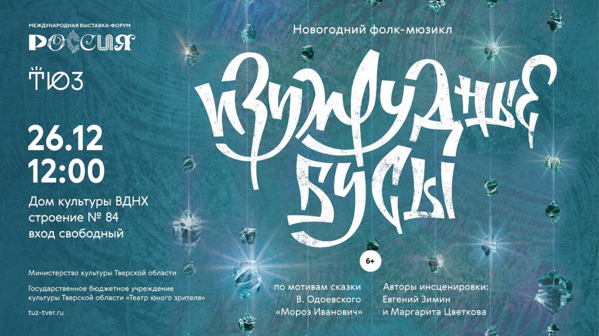 Тверской ТЮЗ представит зрителям новогодний спектакль режиссера Евгения Зимина «Изумрудные бусы» (6+) - фолк-мюзикл по мотивам сказки В. Одоевского «Мороз Иванович».