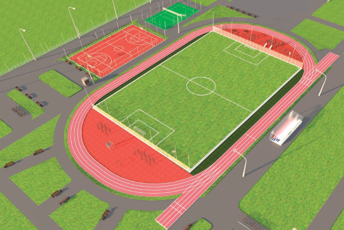 «Умная» спортплощадка включает футбольное поле с искусственным покрытием, беговую дорожку, площадки для баскетбола и волейбола, трибуну на 100 мест, улично-спортивный комплекс. На всех спортивных снарядах размещаются QR-коды, дающие возможность ознакомится с методикой занятий.
