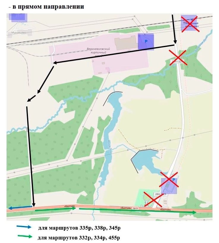 Схема движения автобусных маршрутов №332р, №334р, №335р, №338р, №345р, №455р в этот период будет изменена.