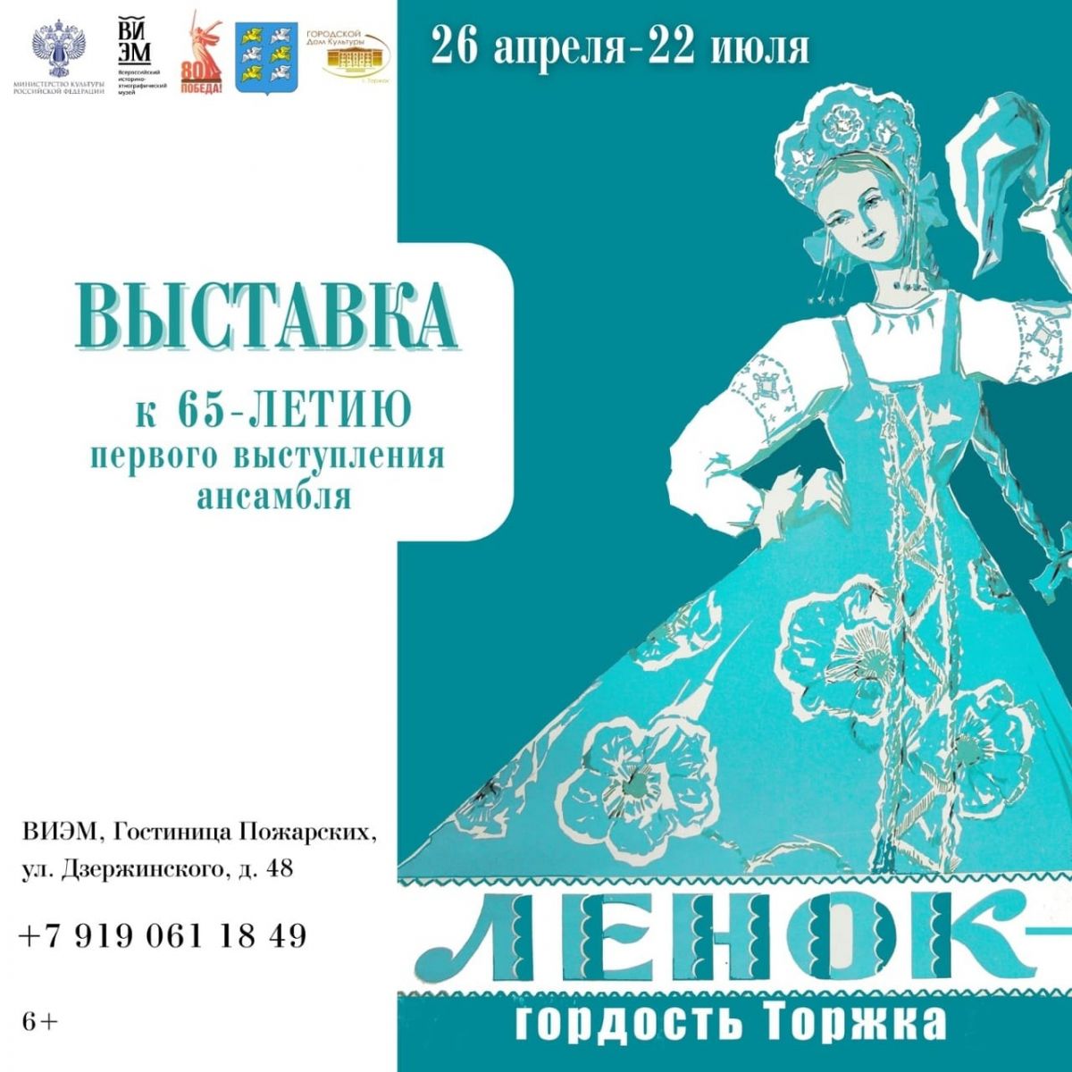 В экспозиции представлены материалы, фотографии, сценические костюмы и афиши, рассказывающие о становлении и истории ансамбля народной песни и танца «Ленок», отмечающего своё 65-летие.