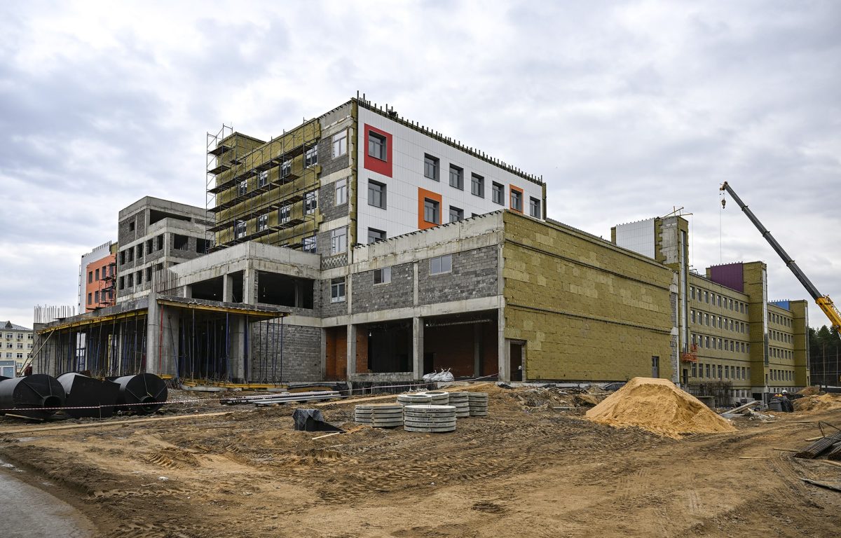 Сейчас на площадке завершаются устройство кровли и монтаж оконных блоков медицинского комплекса ДОКБ. Продолжаются внешние и внутренние отделочные работы, монтаж перегородок, устройство внешних и внутренних инженерных систем, идет установка котельной.