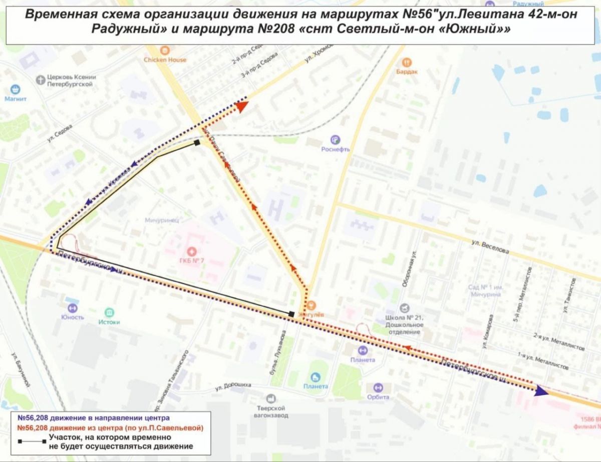 Схема движения автобусных маршрутов №56 и №208 в этот период будет изменена.