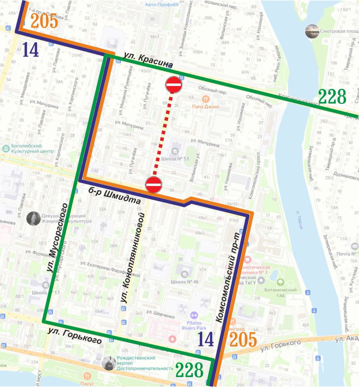 Схема движения автобусных маршрутов №14, №205, №228 в этот период будет изменена.