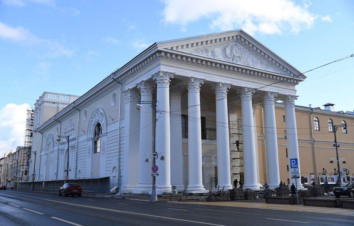 На данный момент завершены работы по покраске стен, рустов, пилястр, лепнины на северном фасаде театра.