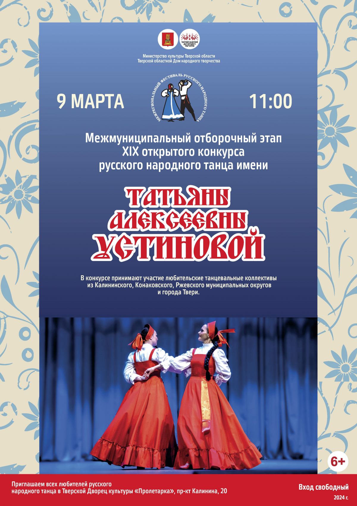 Конкурс посвящён знаменитой уроженке областной столицы – танцовщице, балетмейстеру, хореографу, теоретику народно-сценического танца, народной артистке СССР, лауреату двух Сталинских премий, почётному гражданину Твери Татьяне Алексеевне Устиновой.