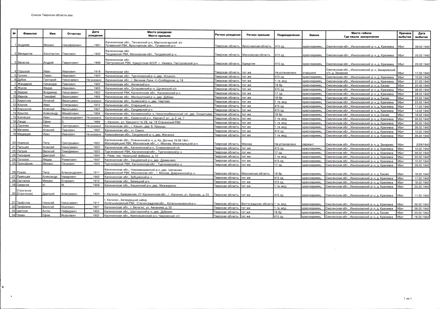 Из них 34 воина - уроженцы тверской земли. Их имена удалось установить. Сейчас ведётся поиск родственников.