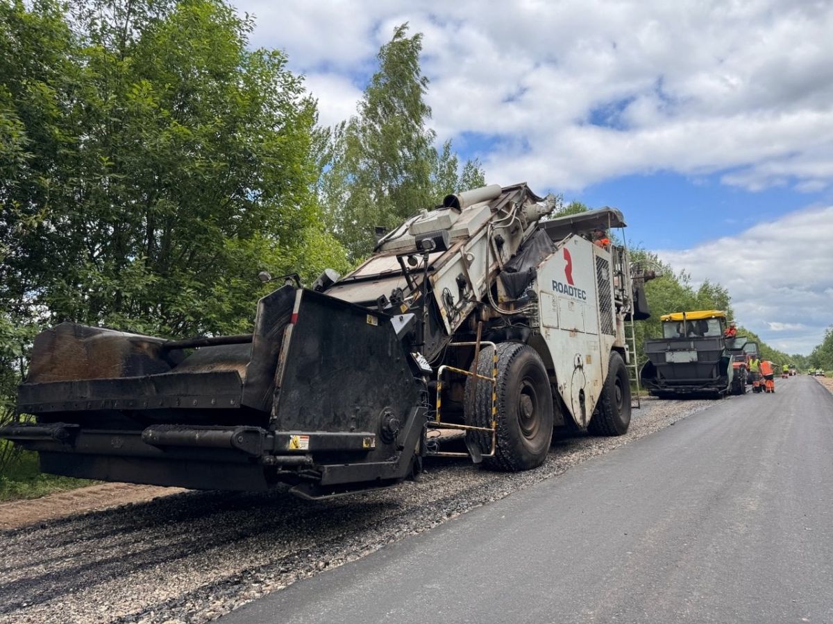 Подрядчик уже отфрезеровал существующее покрытие и устроил выравнивающий слой асфальтобетона на участке протяженностью 9,5 километра в Лихославльском округе.