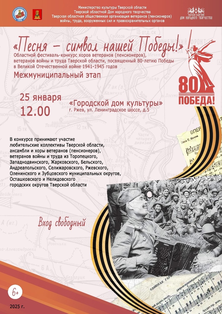Первый межмуниципальный этап состоится 25 января в 12:00 в Городском доме культуры Ржева. Его участниками станут хоровые коллективы ветеранов (пенсионеров), ветеранов войны и труда из Торопецкого, Западнодвинского, Жарковского, Бельского, Андреапольского, Селижаровского, Ржевского, Оленинского муниципальных округов, Осташковского и Нелидовского городских округов.