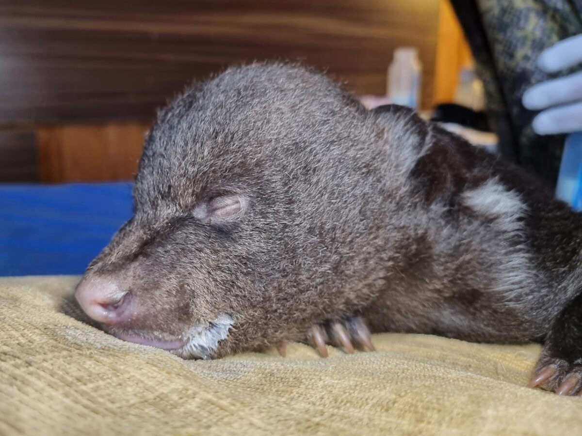 На этот раз медвежонка, оставшегося без мамы, обнаружили в Тарногском районе Вологодской области. Местный охотовед Михаил Баженов позаботился о пушистом сироте в первые сутки, а в это время специалисты Центра оперативно выехали из Тверской области за спасённым малышом.