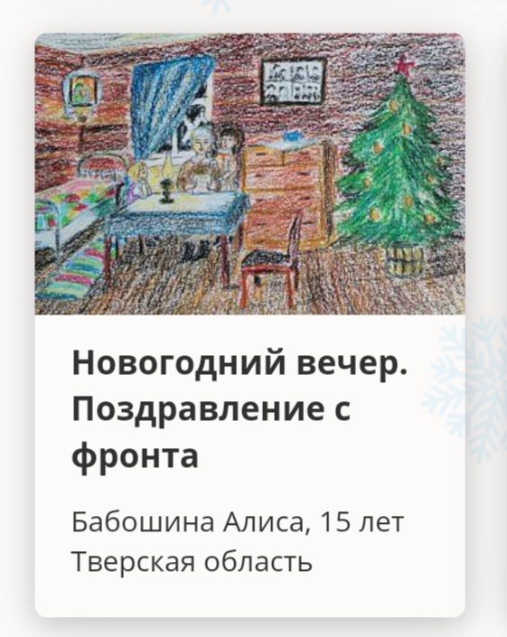 В своих работах они нарисовали, как встречали Новый год во время войны, украшали елку, делали елочные игрушки своими руками и что дарили на праздник. Многие участники дополнили рисунки короткими рассказами и семейными историями.