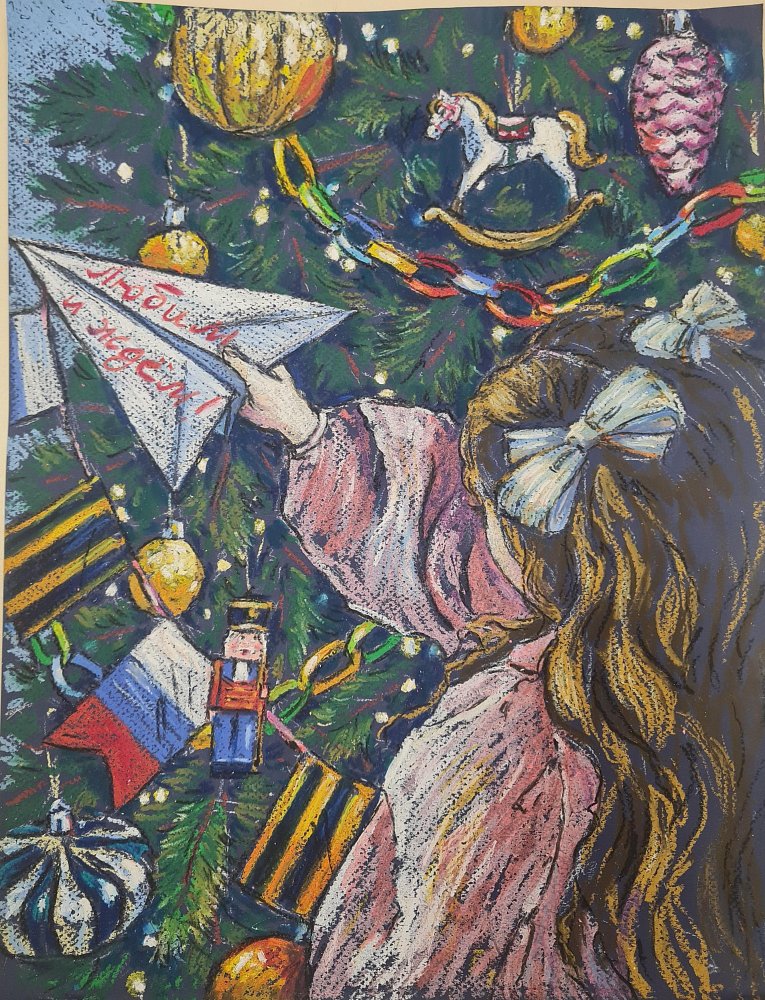 В выставку вошли рисунки, посвященные семейным традициям подготовки к Новому году разных поколений. В работах авторы изобразили, как в разные годы бойцы и семьи в тылу украшают елку, делают подарки своими руками, пишут письма, водят хоровод вокруг красавицы-елки и загадывают заветные желания.