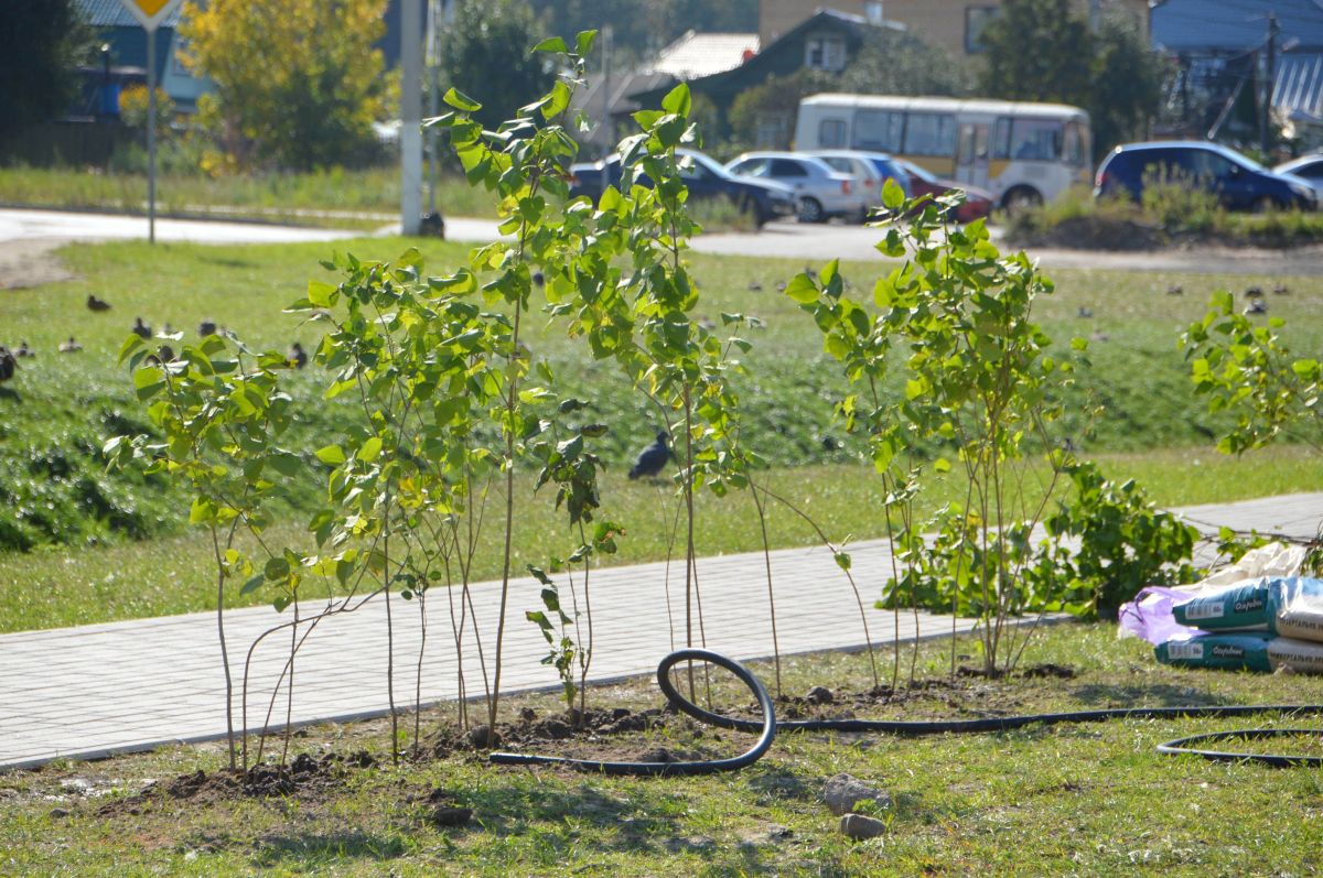 20 молодых яблонь и 100 кустов сирени располагаются по периметру общественной территории. В дальнейшем в сквере планируют высадить ещё 200 деревьев вдоль тротуаров.