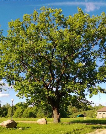 Раскидистый черешчатый дуб расположен рядом с домом-флигелем 1890 года. Музейные работники произвели замеры. По их данным, высота дуба составляет 11 метров, диаметр ствола – 1,3 метра. Примерный возраст дерева – 200 лет.
