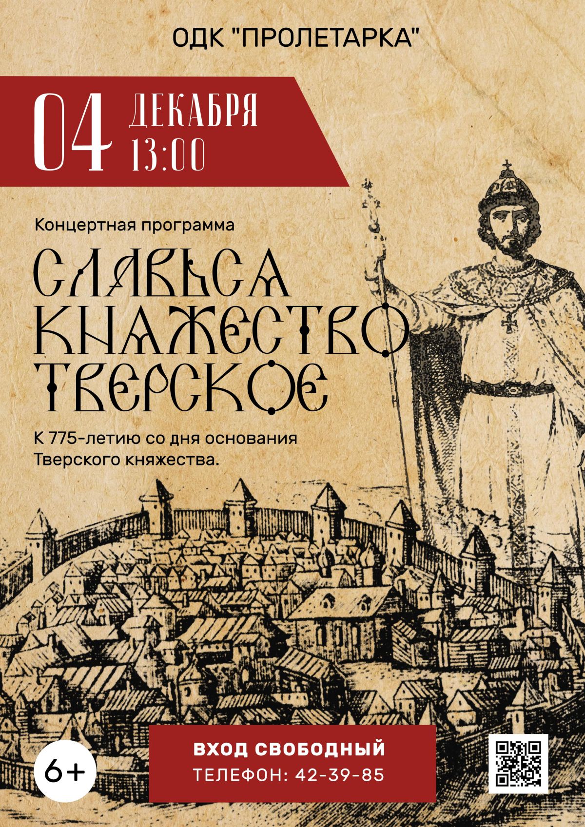 На сохранение исторической памяти, национальных традиций направлена программа концерта «Славься, княжество Тверское». Также для ценителей истории в фойе ДК также будет развернута интерактивная выставка «Наш герой – Михаил Тверской. Оружие и доспехи Руси и Золотой Орды XIII–XIV веков».