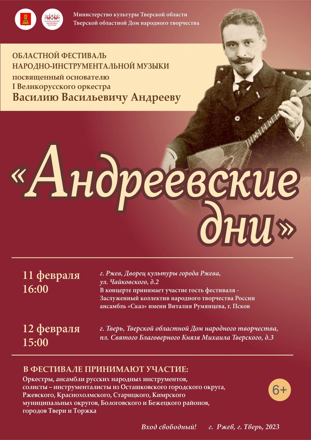 11 февраля в 16:00 в концертном зале Дворца культуры Ржева (улица Чайковского, дом 2) состоится торжественное открытие фестиваля и концерт любительских коллективов народно-инструментальной музыки.