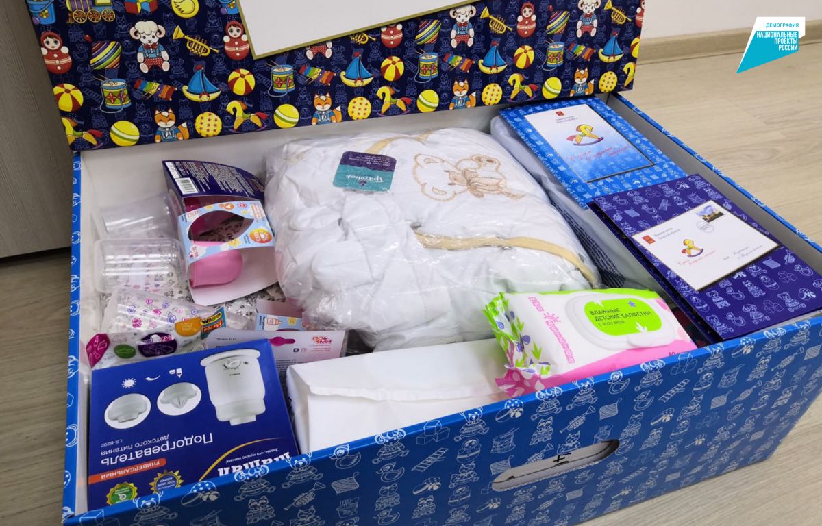 В набор входят 70 предметов, необходимых для ухода за младенцем: постельные принадлежности, одежда, средства гигиены и другие.