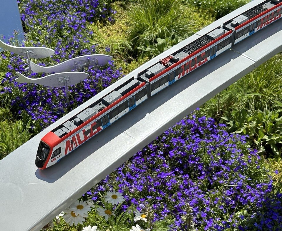 Над цветами возвышается мост с электропоездом «Иволга» - достижением Тверского вагоностроительного завода. Это вторая составляющая экспозиции, представляющая мир инноваций и современных технологий.