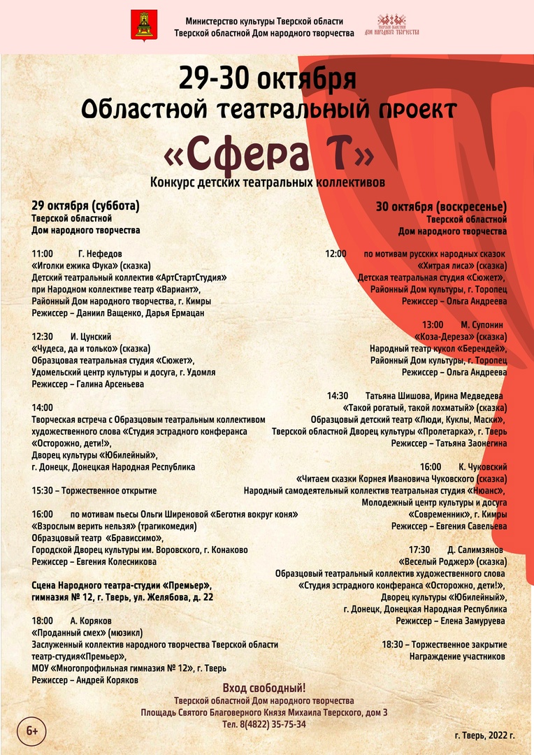 Место проведения: Тверь, площадь Святого Благоверного Князя Михаила Тверского, дом 3. Вход свободный (6+).