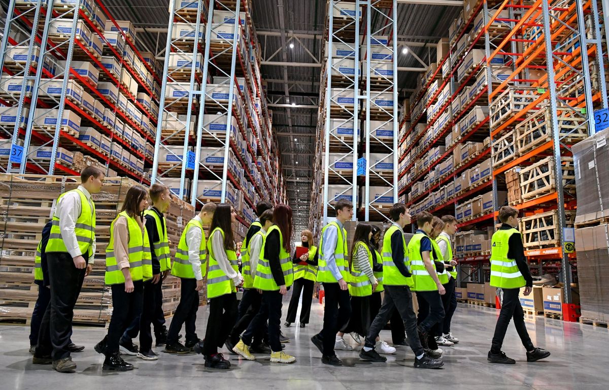На АО ТК «Альфа» ребятам рассказали и показали, как организована работа комплекса. Например, на предприятии внедрена технология голосового отбора. Она применяется для быстрой и безошибочной сборки товаров на высоконагруженных складах, без бумажных документов и терминалов сбора данных.
