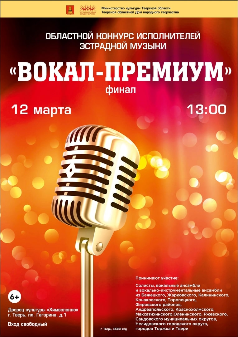 В финале с конкурсными программами выступят лучшие эстрадные вокально-инструментальные ансамбли, вокальные ансамбли и солисты из Калининского, Бежецкого, Максатихинского, Жарковского, Торопецкого, Конаковского и Фировского районов, Оленинского, Сандовского, Краснохолмского муниципальных округов, Нелидовского и Ржевского городских округов, городов Тверь, Торжок и Бежецк.