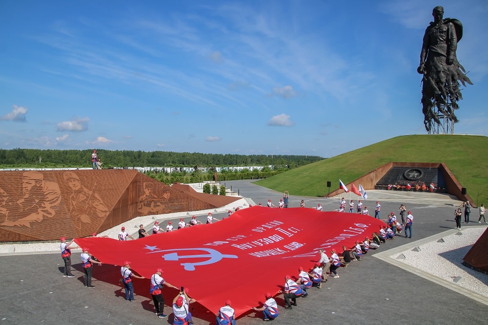 Затем участники автопробега развернули гигантскую копию Знамени Победы – полотнище площадью 200 квадратных метров. Также гости посетили музейный павильон Ржевского мемориала, где представлены уникальные раритеты и истории защитников ржевской земли.