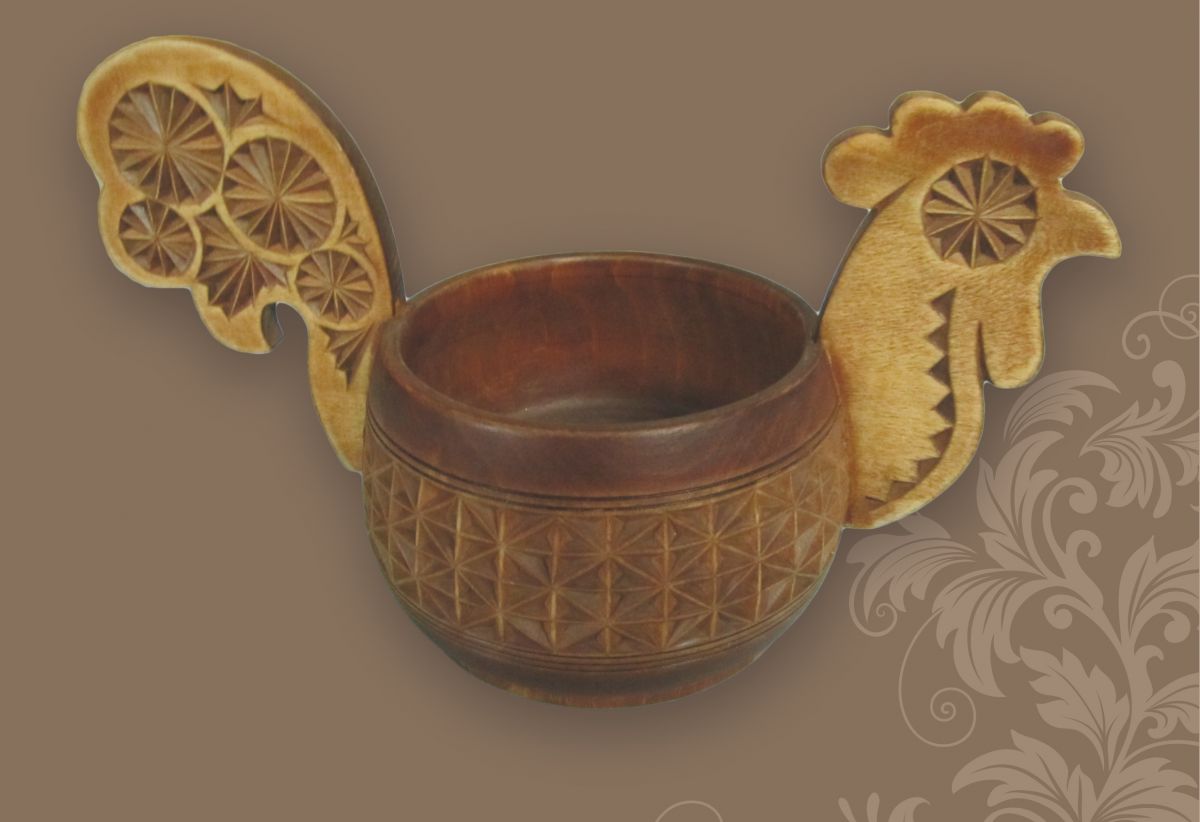 Тут представлено больше 50 предметов из собрания Тверского краеведческого музея: декоративные вазы и тарелки, ковши с геометрическим и растительным орнаментом, разделочные доски, лаковые кубышки, наборы для специй, солонки и другие интересные предметы. В руках мастера дерево начинает петь и превращается в удивительную мелодию резьбы.
