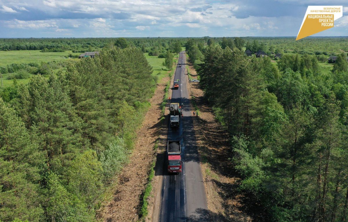 Уже завершена укладка асфальтобетона. Покрытие заменили на двух участках дороги.