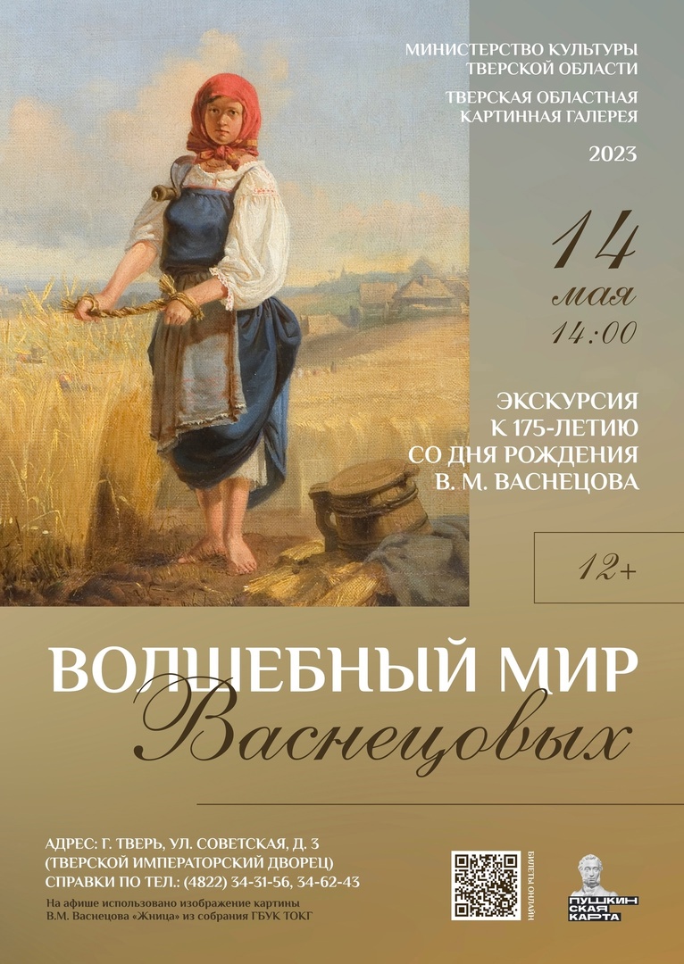 Экскурсия будет посвящена творчеству мастера и его брата Аполлинария Васнецова. Гости смогут увидеть редкие работы из собрания Тверской областной картинной галереи, а также познакомятся с подлинной работой Виктора Васнецова, представленной в постоянной экспозиции.