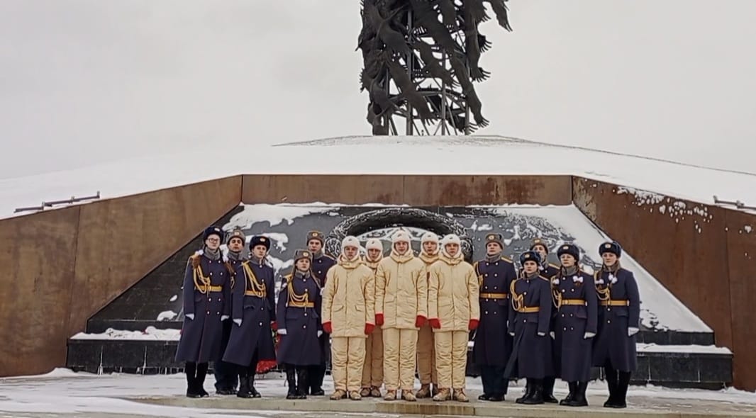 Участники акции возложили цветы к величественному монументу и записали видеоролик со словами напутствия. Съемки проходили в музейном павильоне комплекса.