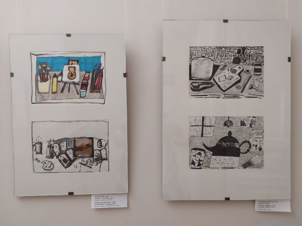 Картины, отобранные к этой выставке, выполнены в жанре натюрморт – это одна из многочисленных тем, которым обучают детей в изостудии. Ребята создали целый ряд картин: на крафтовой бумаге маркерами и цветными карандашами, на тонированном картоне пастельными мелками, яркие живописные натюрморты гуашевыми красками на белом фоне.