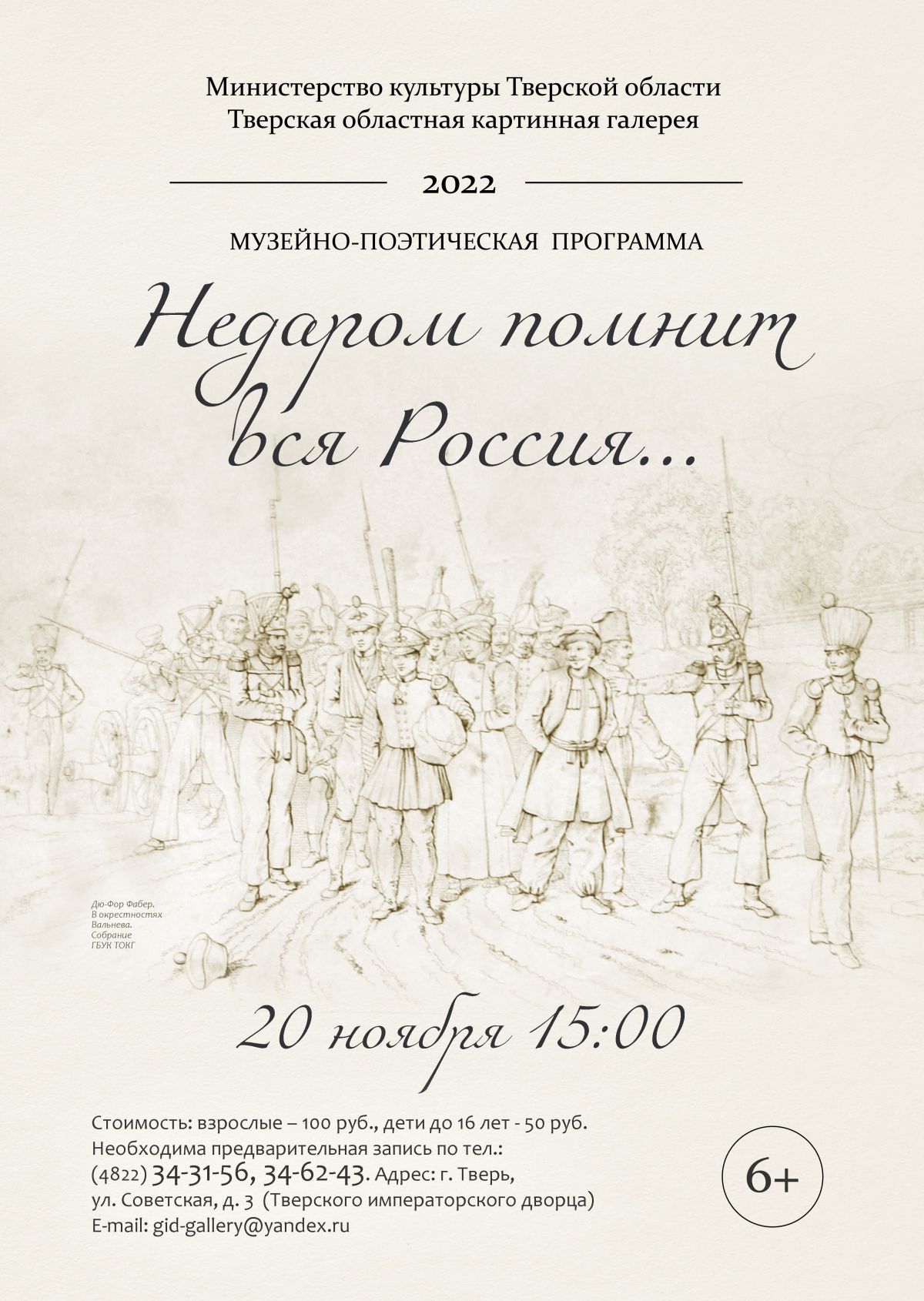 Помимо этого, гости смогут познакомиться с выставкой «Война 1812 года глазами художников-современников», где представлены произведения из фондов Тверской областной картинной галереи.