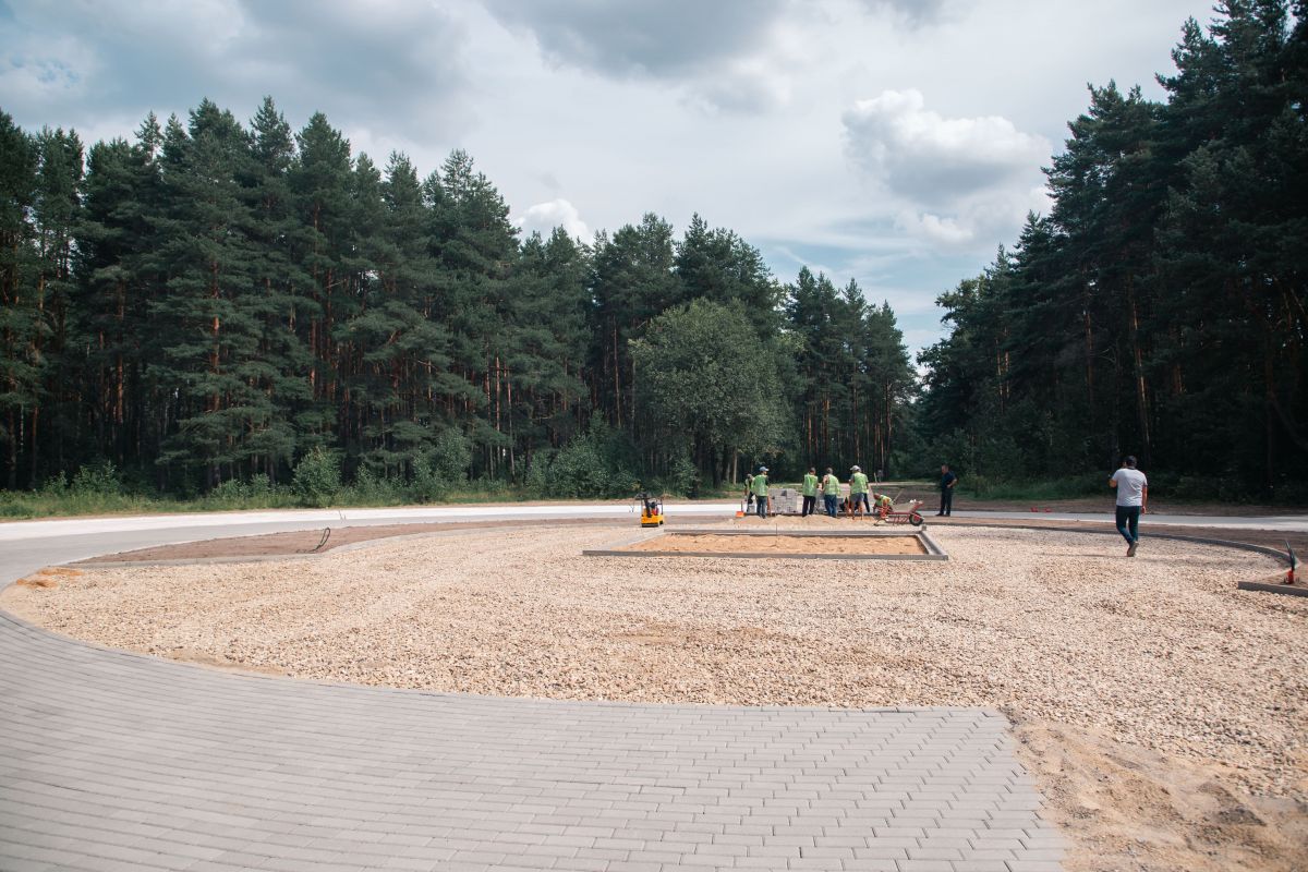 Сейчас на объекте ведётся планировка, установка малых архитектурных форм, детской и спортивных площадок, устройство пешеходных дорожек, вело- и автопарковок, продолжаются работы по озеленению и освещению.