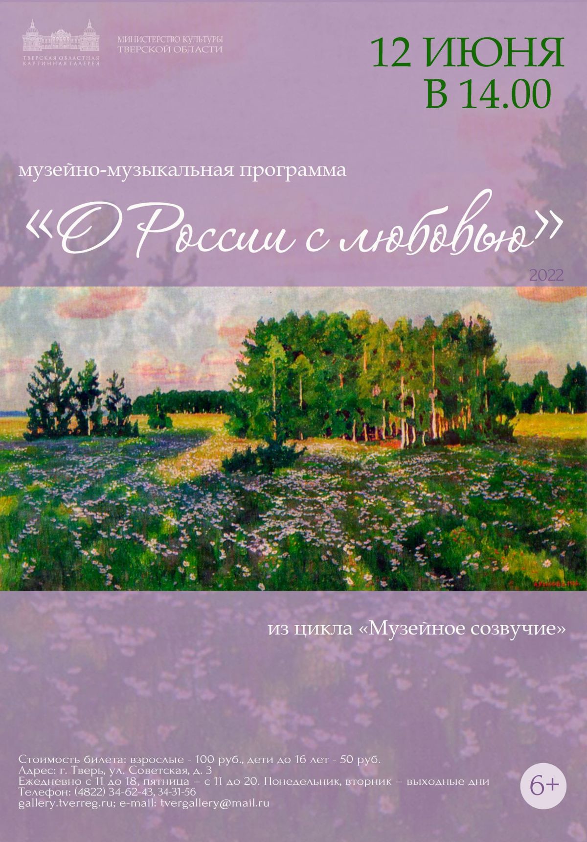 Гости смогут познакомиться произведениями русских и советских художников из коллекции Тверской областной картинной галереи. Также прозвучат музыкальные произведения о России.