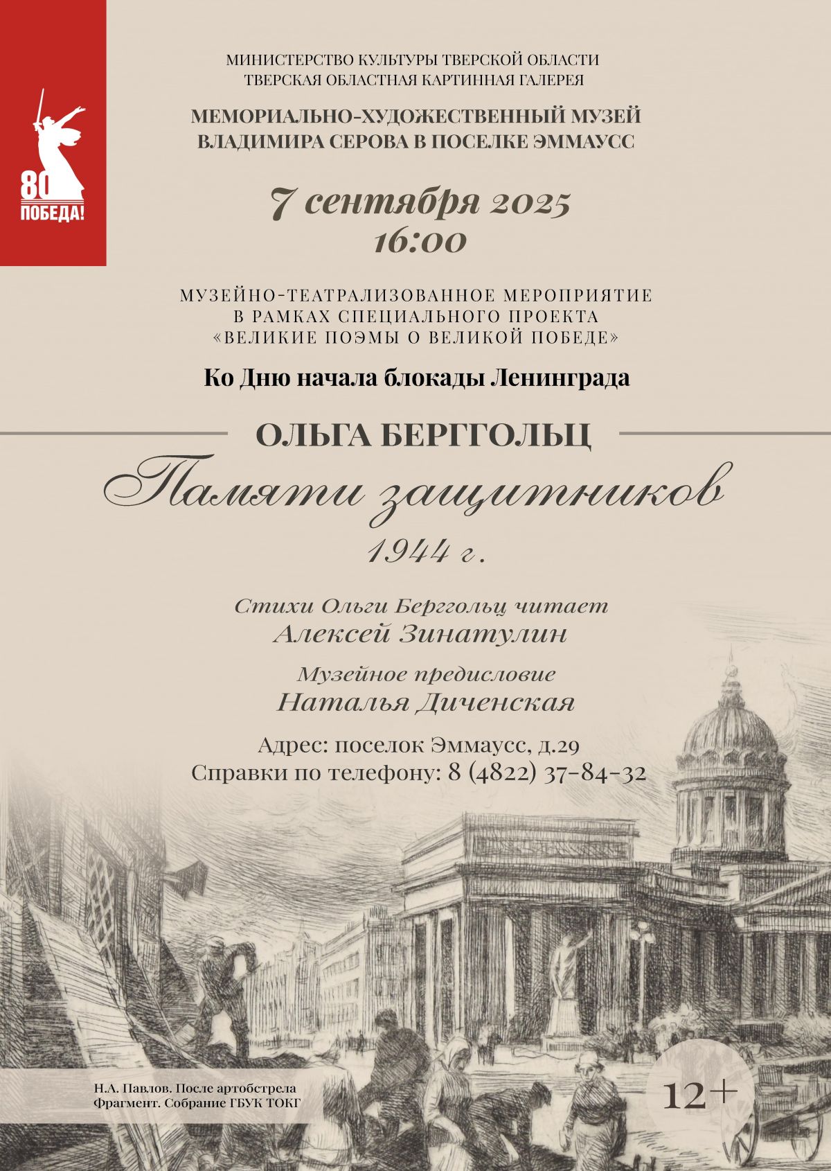 Автор и исполнитель литературных композиций - Алексей Зинатулин, музейное предисловие - Наталья Диченская. Возрастная категория: 12+.