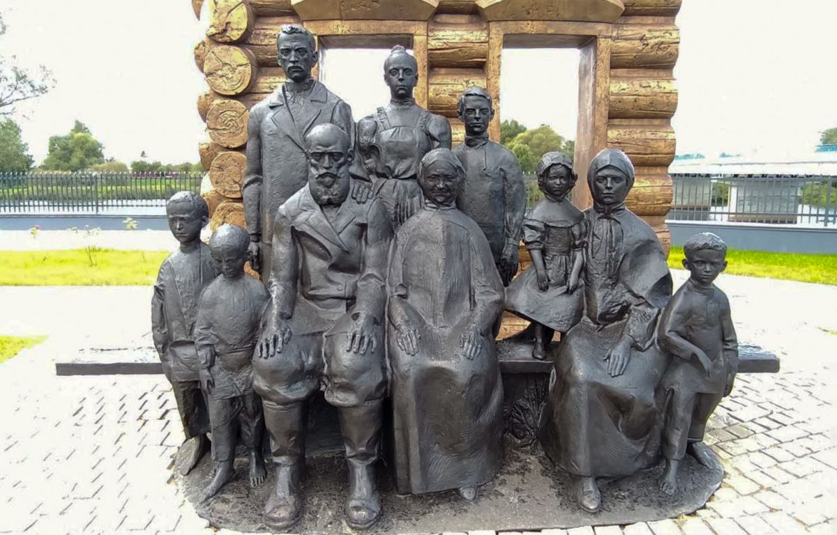 Автор монумента – член Союза художников Москвы, декан Московского государственного академического художественного института имени В.И. Сурикова Евгений Тетерин – взял за основу идеи образ многодетной крестьянской семьи и наполнил композицию символическими акцентами и элементами.